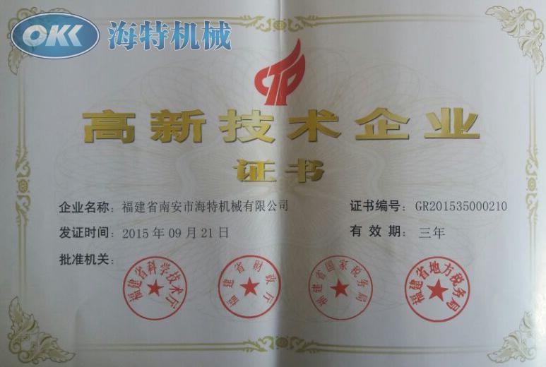 2015年榮獲福建省高新技術(shù)企業(yè)的認(rèn)定