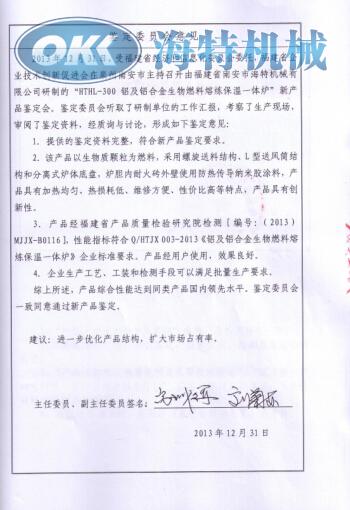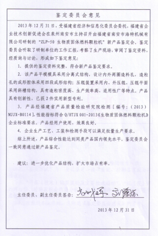 2013年三項(xiàng)產(chǎn)品, 生物質(zhì)固體燃料顆粒機(jī)、纖維干混攪拌機(jī)、 鋁及鋁合金熔煉保溫一體爐經(jīng)福建省新產(chǎn)品新技術(shù)鑒定為國(guó)內(nèi)領(lǐng)先水平