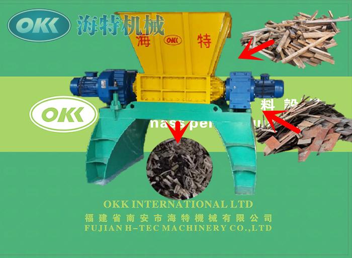 RSM1800(15KW,production 1-2t),RSM3000(44KW,production2-3t),double spiral shredding machine, wood, tray tore up waste, living garbage, waste template pieces, both dry and wet materials, waste iron nails, imports of irregular blade, the whole machine modular design, easy to repair and replacement, multiple protection system